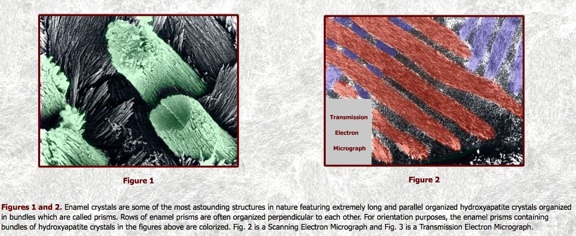 Venturing an even closer look through a transmission electron microscope, the crystalline structure of our tooth enamel would look like the following photos.