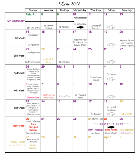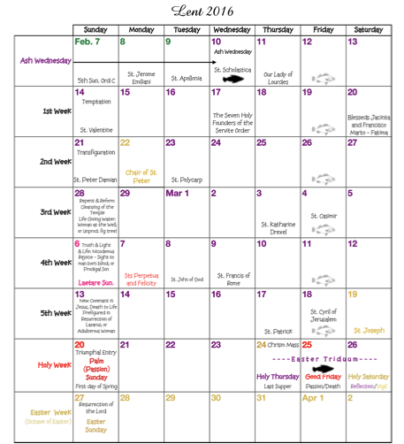 Lent Calendar 2016
