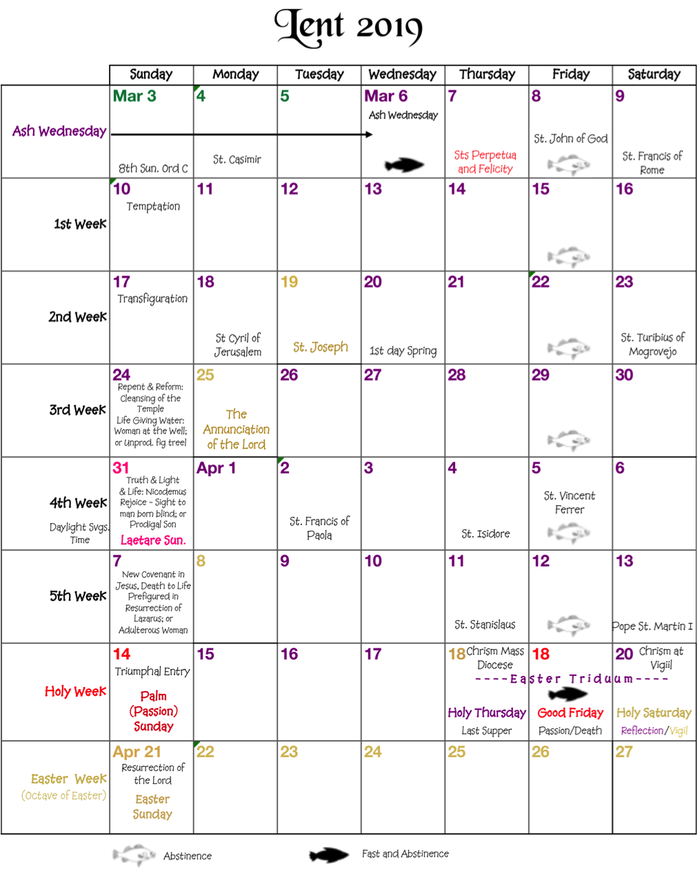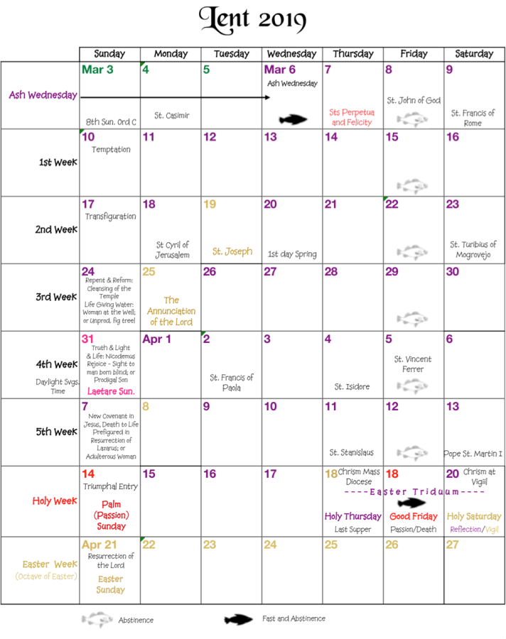 Lent Calendar 2019