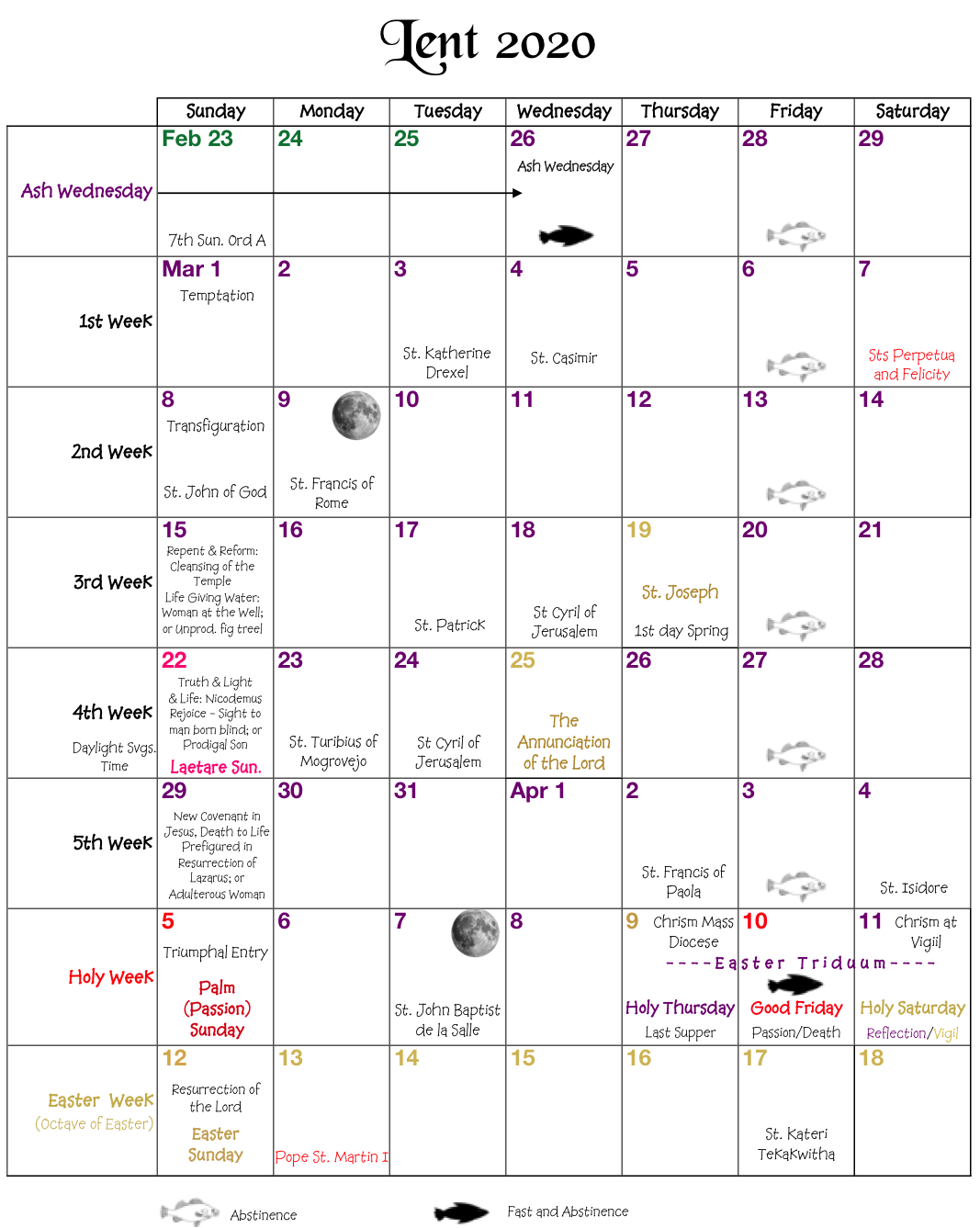 Lent Calendar 2020