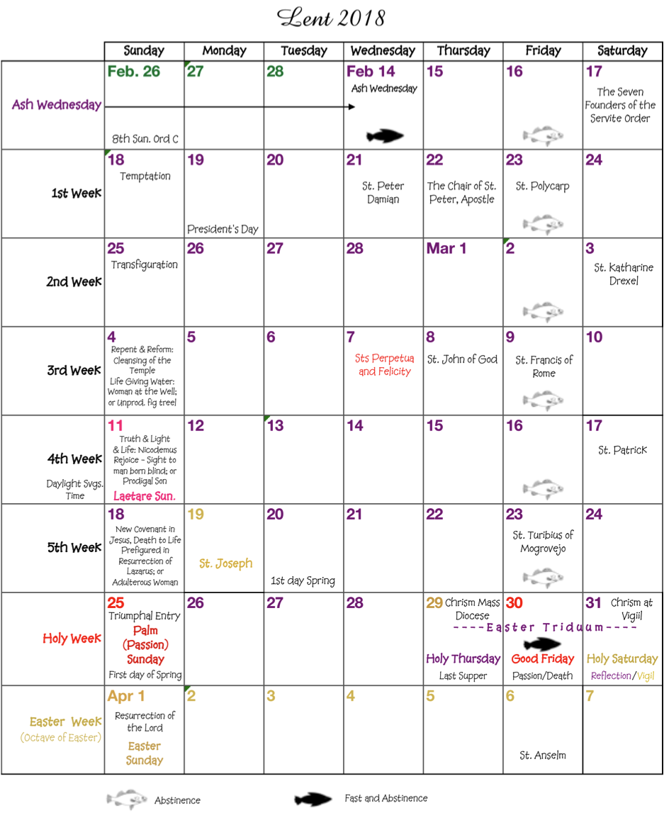 Lent Calenday 2018