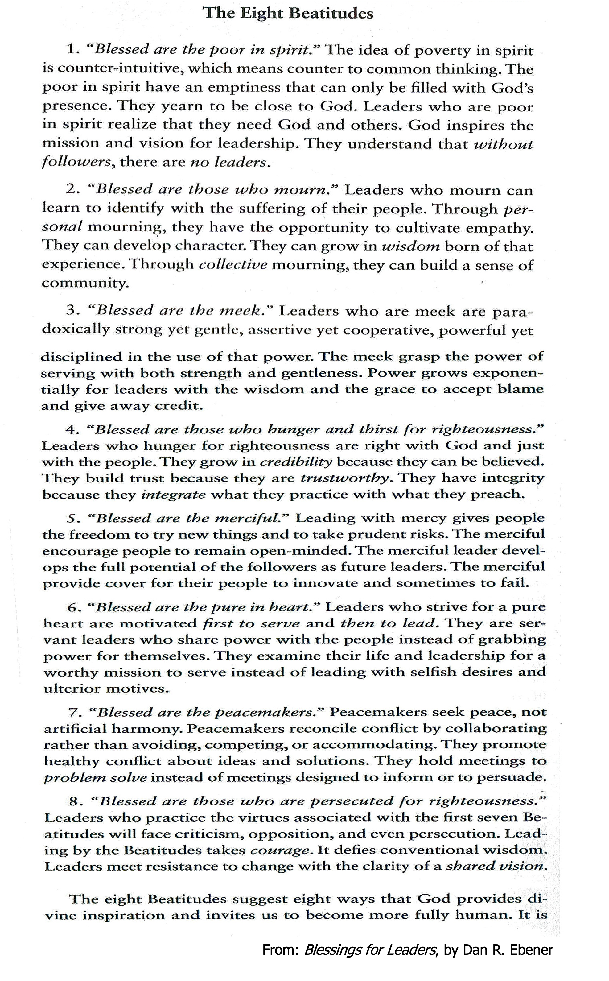BEATITUDES REFERENCE: