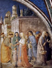 The earliest mention of Stephen is when he is listed among the seven men chosen to supervise the public tables. We recall that these first Christians held their property in common, the well-to-do sharing what they possessed with the poor; and at this time, as always in the wake of war, there were many “displaced persons” in need of charity. The Apostles selected seven good and prudent men to administer and supervise tables. The seven were prayed over and ordained by the imposition of hands. The title of deacon, which came to be linked with their function, derives from the Greek verb meaning “to minister.” These men served the Christian community in temporal and charitable affairs; later on they were to assume minor religious offices.