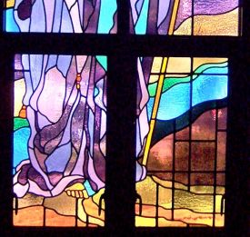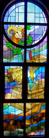 So in the first of the Abraham Triplet windows we see the Stone Altar, the Wood for the sacrifice and the Dagger for killing Isaac (the sacrificial lamb).