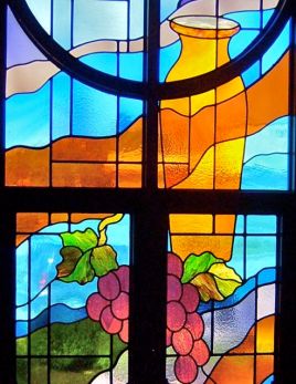 In this last window of the Abraham Triplet, we see the jar of milk or water and the grapes of the prosperous, “Promised Land.”